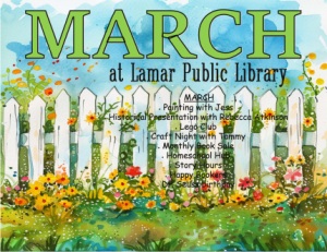 The Friends of the Lamar Public Library now have monthly book sales! The March Book Sale will be held on March 6 and 7 from 9am - 1pm. Proceeds help go towards programs such as the Dolly Parton Imagination Library and our Summer Reading Program!
